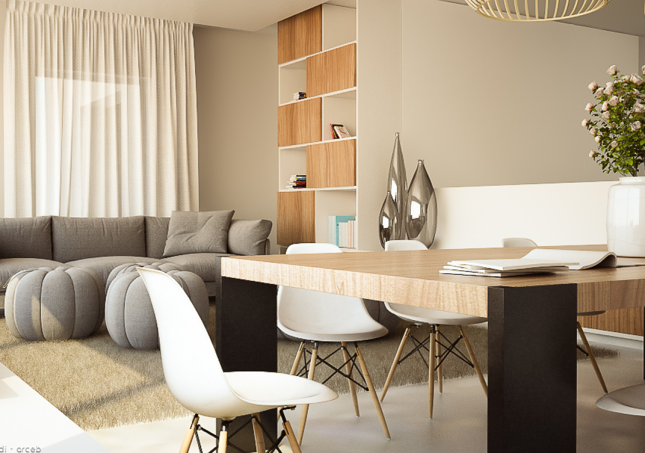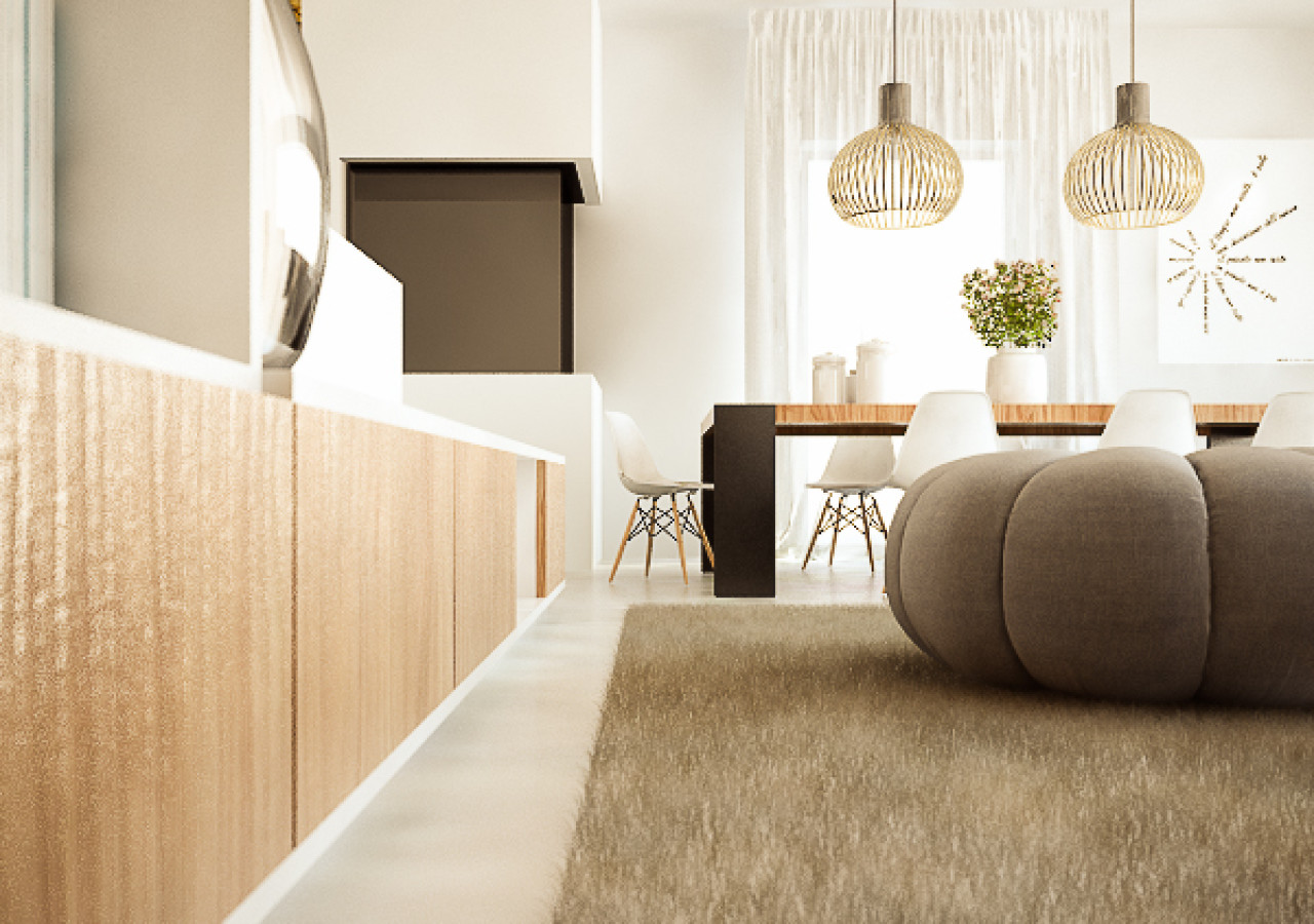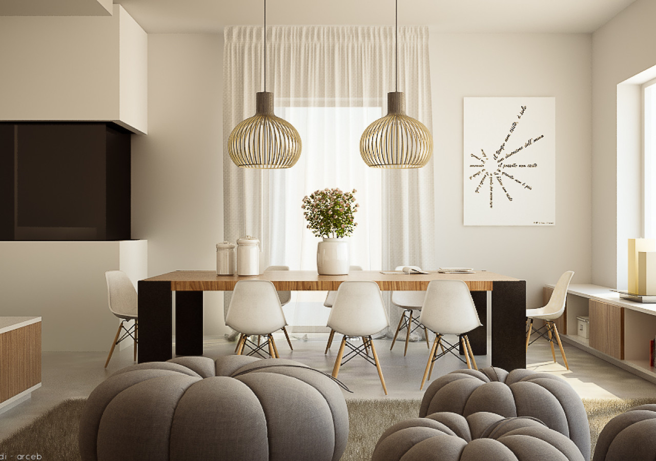 Il soggiorno è caratterizzato da grandi aperture vetrate che vogliono enfatizzare la totale apertura verso il paesaggio circostante.